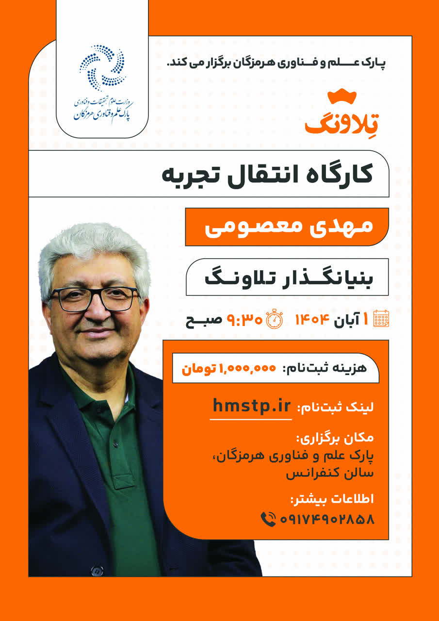 کارگاه انتقال تجربه با حضور بنیان‌گذار شرکت تلاونگ و مشارکت دبیران و اعضای انجمن‌های علمی در پارک علم و فناوری هرمزگان برگزار شد