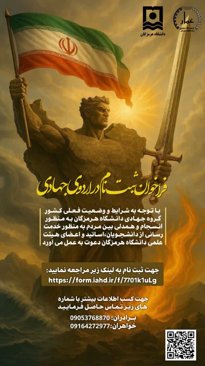 فراخوان ثبت نام در اردوی جهادی ویژه دانشجویان و اساتید دانشگاه هرمزگان