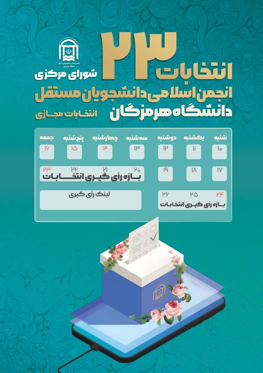 - انتخابات شورای مرکزی انجمن اسلامی دانشجویان مستقل دانشگاه هرمزگان