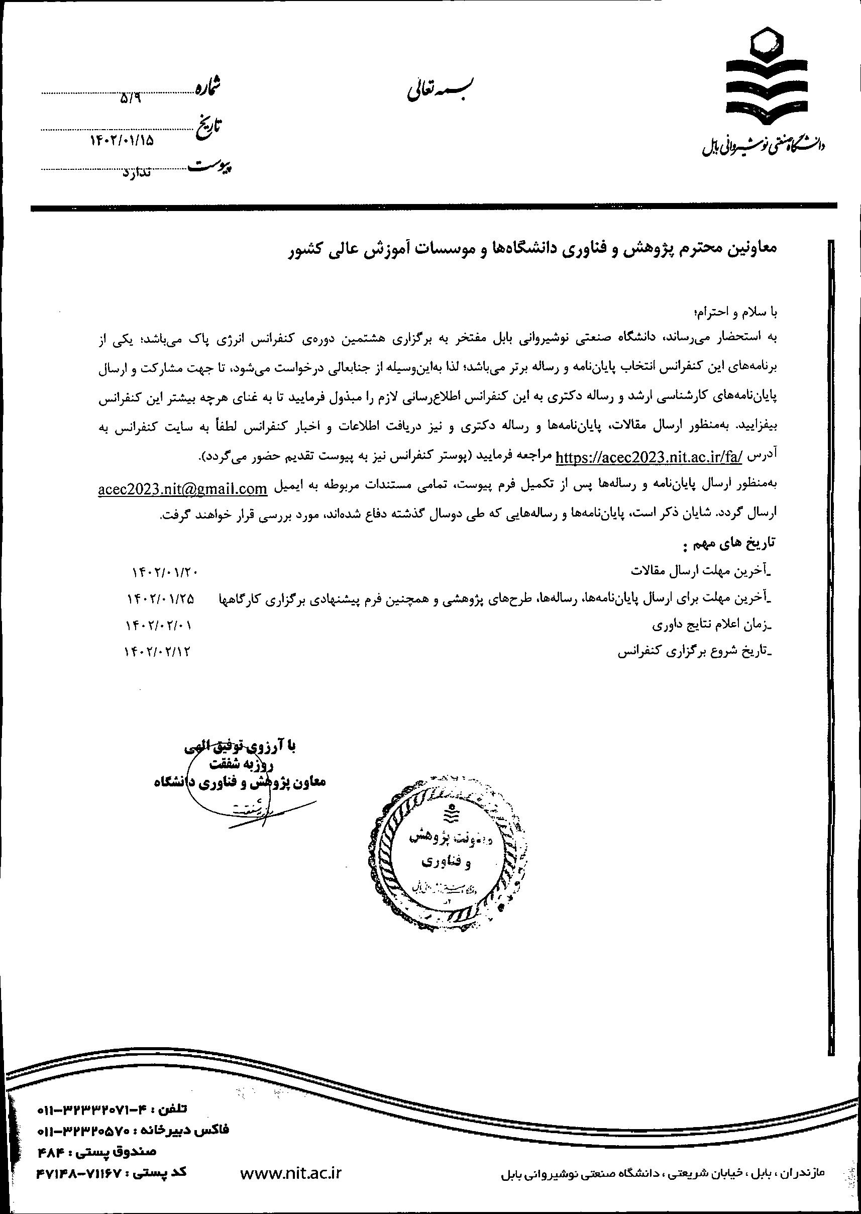 برگزاری 8مین دوره کنفرانس انرژی پاک با هدف انتخاب پایان نامه و رساله برتر تاریخ برگزاری : 1402/02/12