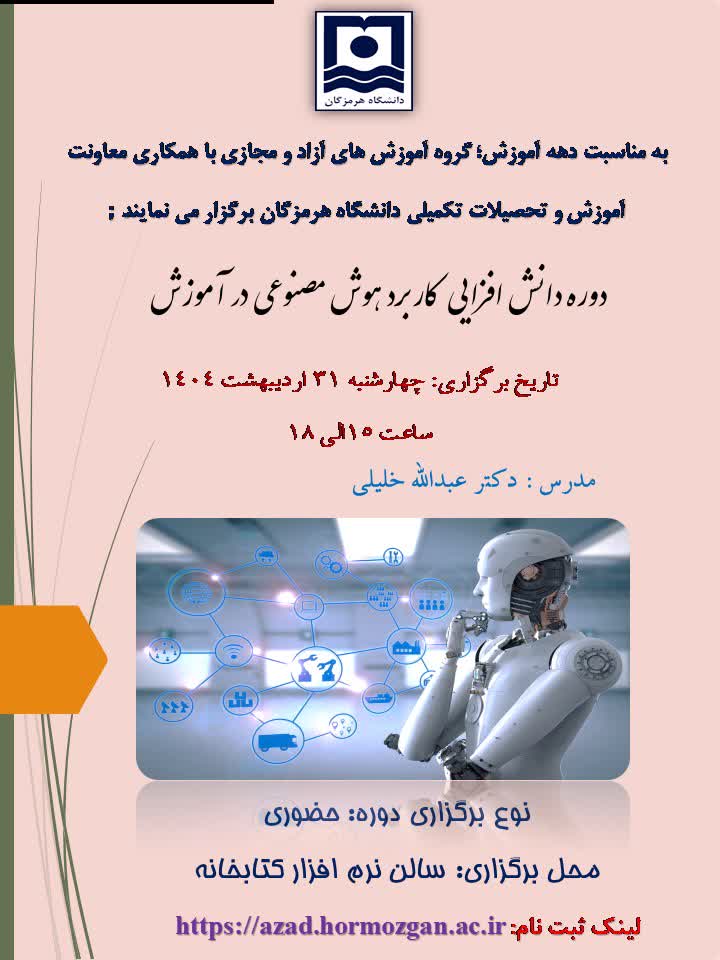 مرکز آموزش های آزاد و مجازی دانشگاه هرمزگان برگزار می کند: