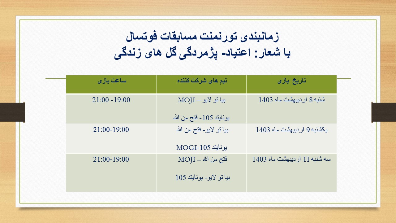 زمانبندی تورنمنت مسابقات فوتسال