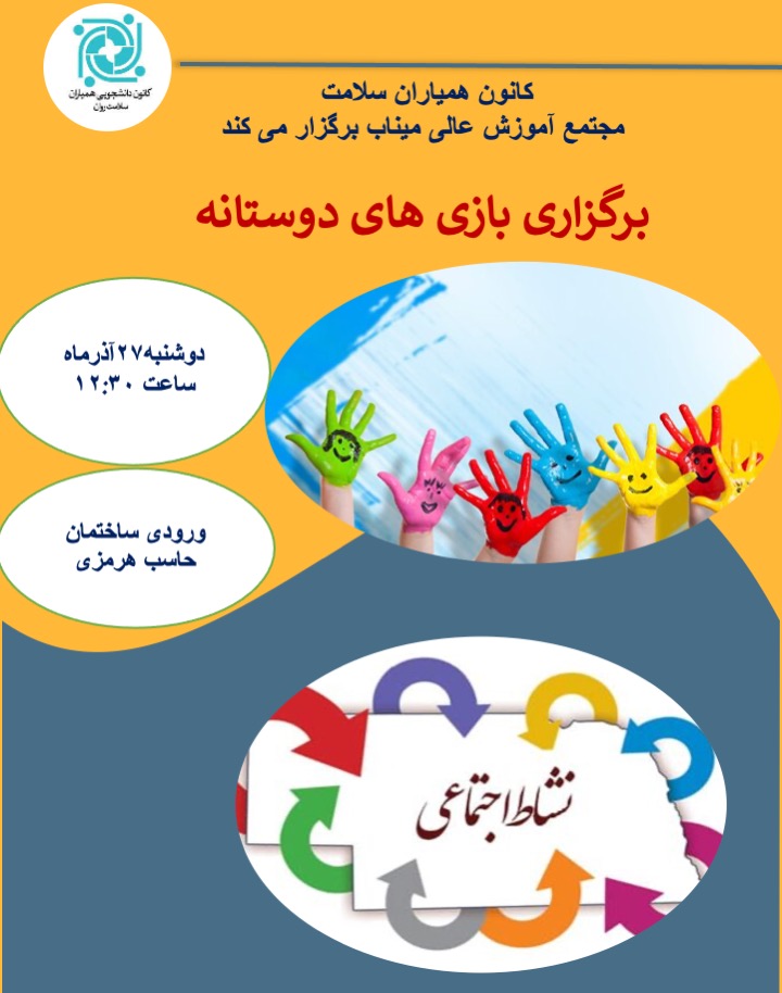 کانون همیاران سلامت مجتمع آموزش عالی میناب بمناسبت روز جهانی بازی برگزار میکند