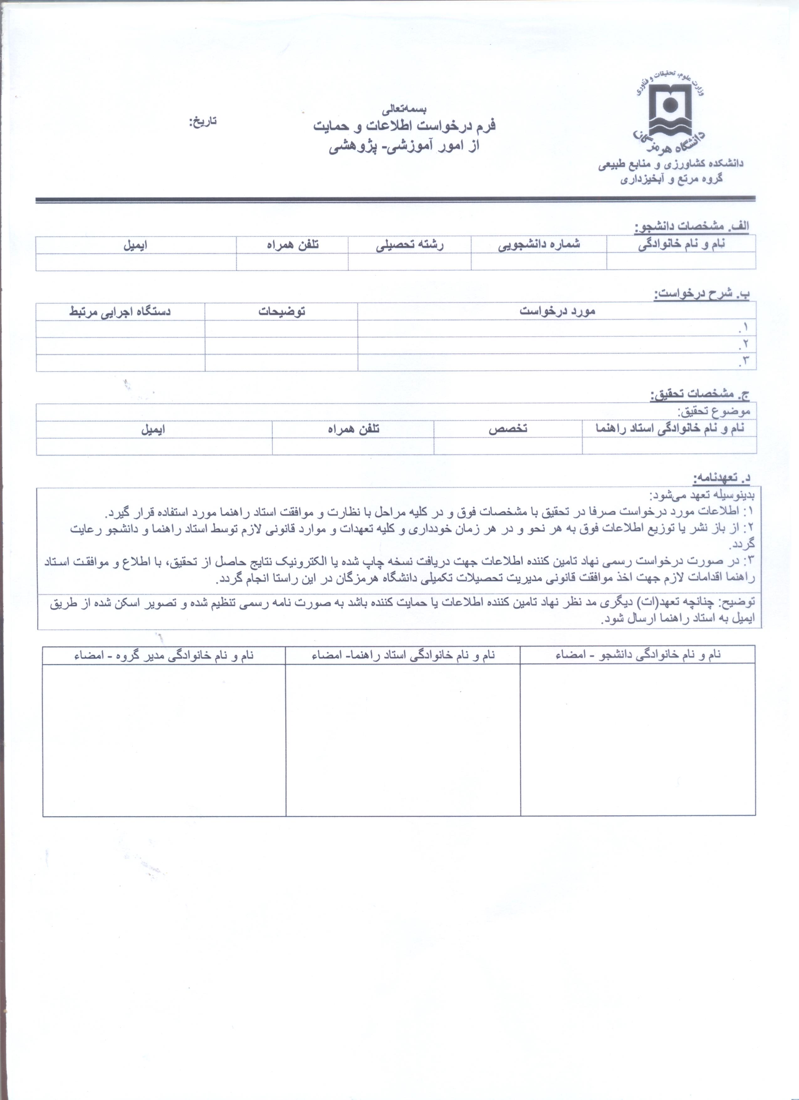 فرم درخواست داده از ادارات خارج ازدانشگاه(1870)